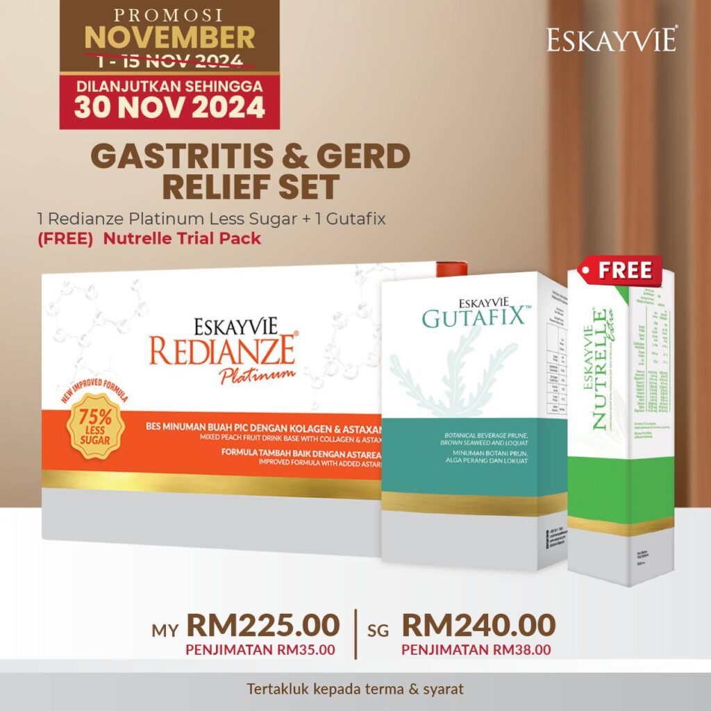 Nak lebih jimat? Segera dapatkan PROMOSI NOVEMBER ini! GASTRITIS & GERD RELIEF SET ini didatangkan khas untuk anda: 1x Redianze Platinum Less Sugar